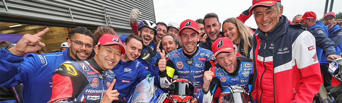 ライダーたちの豊富な経験、HONDA CBR1000RR-R Fireblade(#5)の高いパフォーマンス、そしてブリヂストンタイヤの選択を含むテクニカルチームの戦略的な判断が相まって、F.C.C. TSR Honda Franceは終盤までリードを広げ続けることに成功。非常に難しいトラックコンディションにもかかわらず、チームは確実に勝利への歩みを進めました。